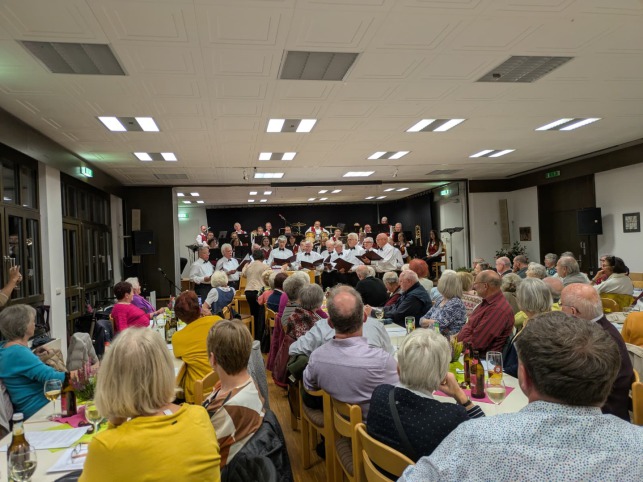 Mit dem bekannten Disco-Hit „September“ ging es schwungvoll weiter. Anschließend begeisterte das Medley „Peter Maffay“ das Publikum mit vertrauten Melodien des Künstlers, darunter „Steppenwolf“, „So bist du“ und „Josie“. Vor der Pause erklang das gefühlvolle Stück „Gedanken an dich“ mit einem beeindruckenden Baritonsolo von Robert Maderholz. In der Pause konnten sich die Gäste bei Getränken und Häppchen stärken.